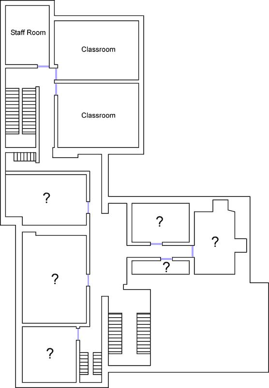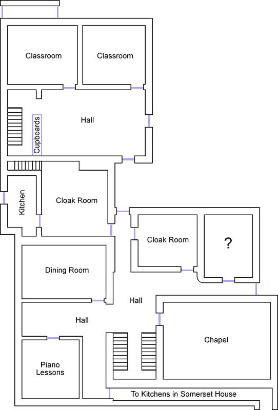 Plan, from memory, of the ground floor of St Louis Convent. If you know any different or can add to these plans, please contact us!